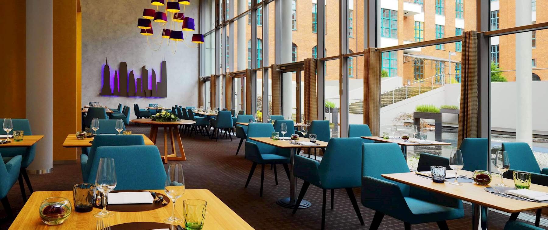 Nehmen Sie, mit Blick auf die New Yorker Skyline, unter den imposanten Designerlampen Platz und lassen Sie sich von uns verwöhnen.